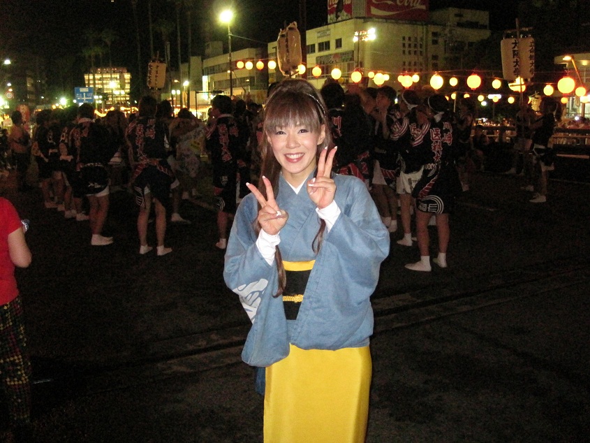今年はタレントの山下真実子さんも初めて武秀連で踊られて連長さんの優しいお心遣いを頂き、浮島ステージで私達二人にステージ上での動きを考えて下さり感激でした~\(^o^)/